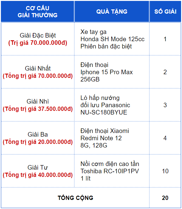 🎁 Tặng 01 (một) Hộp khẩu trang kháng khuẩn 4 lớp Biomeq Mask, khi đổi thưởng 01 (một) giải trúng cho NTD. (Trừ Giải 10: Thẻ điện thoại 30.000đ).